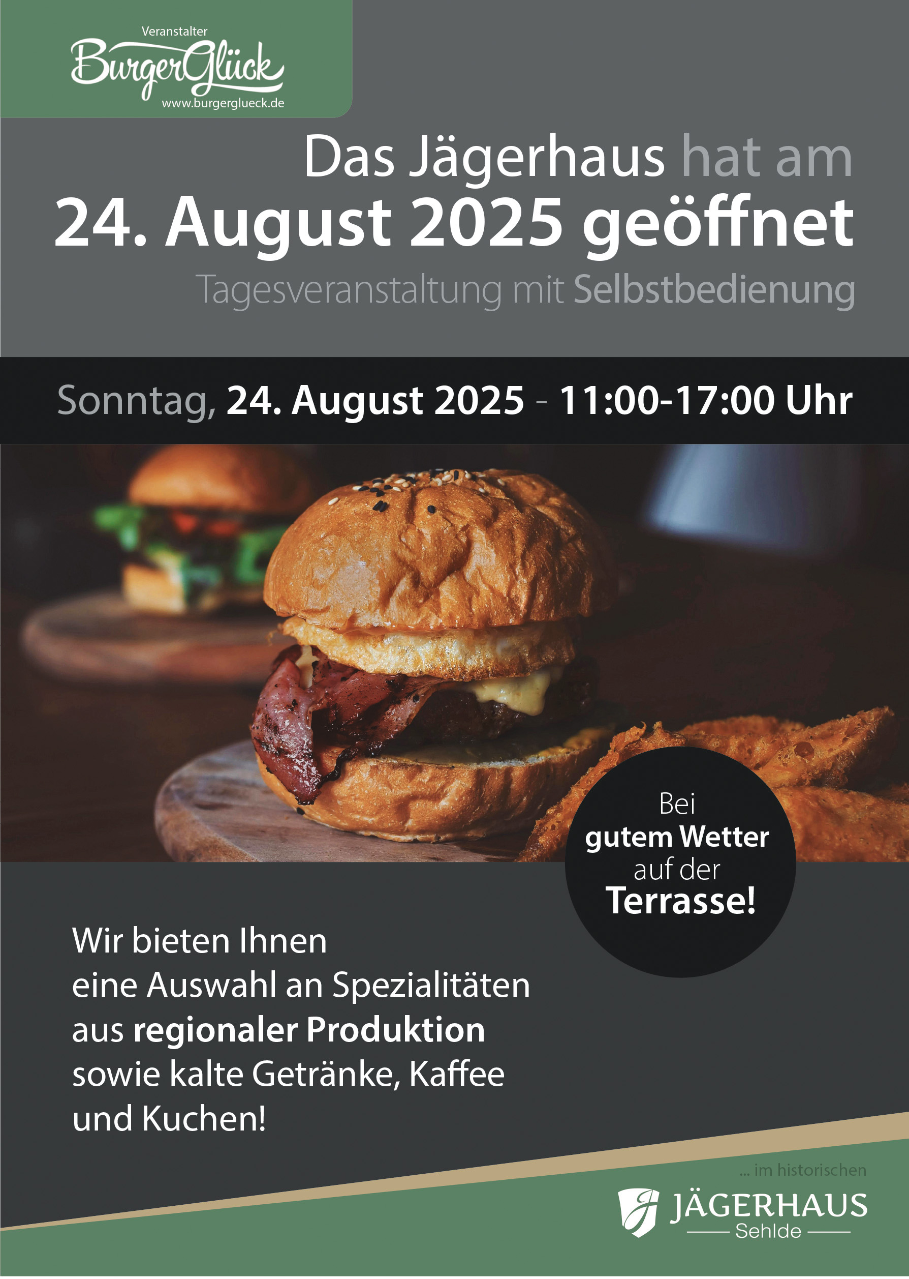 Das Jägerhaus hat am Sonntag, den 24.08.2025 von 11:00 – 17:00 Uhr geöffnet.