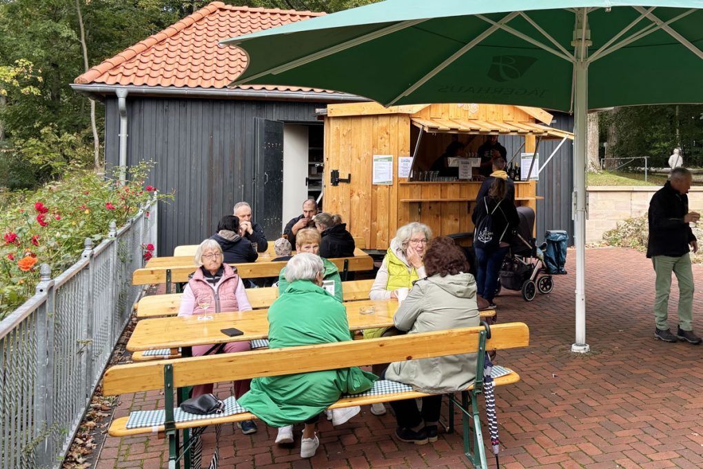 Zum vierten Mal in diesem Jahr haben wir zum Sonntagscafé am Jägerhaus eingeladen. Der letzte Termin am 28. September war ein voller Erfolg: Trotz kühler Morgenstunden – der Ofen wurde vorsorglich schon um halb acht angeheizt – entwickelte sich der Tag zu einem milden, sonnigen Herbstnachmittag. Unsere Gäste genossen Flammkuchen und Federweißer, und auch die regionale Wildbratwurst der Landschlachterei Bremer aus Flöthe fand großen Anklang und war am Ende restlos ausverkauft.