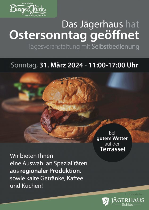 Das Jägerhaus hat am Ostersonntag, den 31.03.2024 von 11:00 – 17:00 Uhr geöffnet.Es handelt sich...